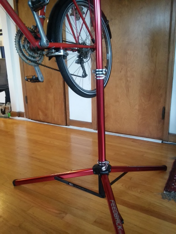 Using just a single drop may have saved me the initial headache of wiping the chain. But talk about penny wise, pound foolish. Lubing every five days easily tripled my chain-lubing work each month. Now I had this chore six times per month instead of once or twice. I got so tired of crouching down, I splurged on a $130 bike stand, so I could at least I could stand upright. But that meant hoisting my anchor-heavy, 1980’s, steel mountain bike onto the stand and fiddling it into the tricky clamp. And when the weather got too cold to do the work outside, I’d have to carry this beast of a bike (43 lbs. with full fenders and a rack) up two flights of stairs. Did I mention I’m forty-nine years old?